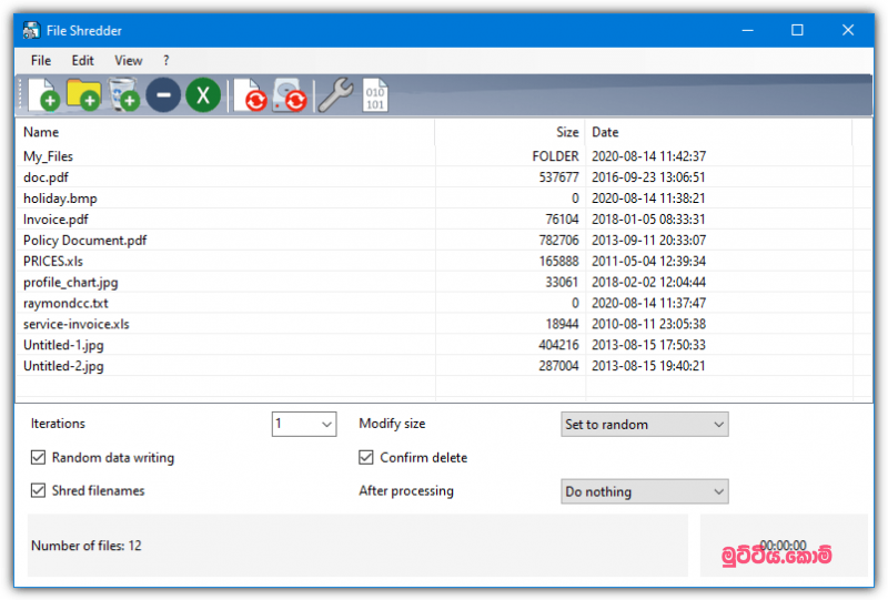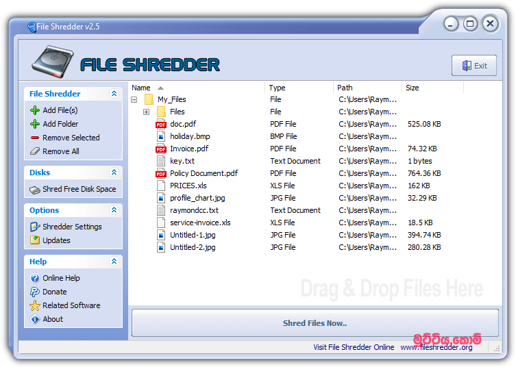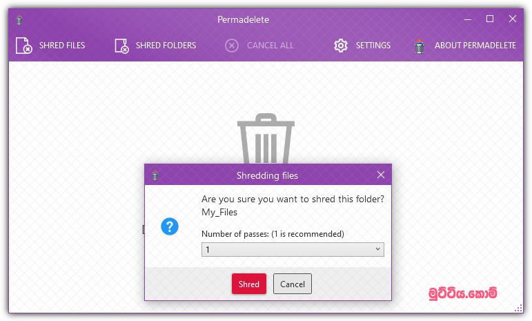 ctupramod සාමාන්යයෙන් අපි හාඩ් ඩිස්ක් එකකින් හරි පෙන් ඩ්රයිව් එකකින් හරි ෆයිල් මැකුවොත්, ඒවා recovery software එකකින් ආයේ ගන්න පුලුවන්. ඒක නිසා සාමාන්ය ඩිලිට් කරන ක්රම හරියන්නේ නෑ වටින ෆයිල් හරි, පෞද්ගලික දත්ත හරි මකනවා නම් කාටවත් අරගන්න බැරිවෙන්න. ඒකට සොෆ්ට්වෙයා තියෙනවා. මේ එයින් කිහිපයක් WipeFile HardWipe Permadelete Alternate File Shredder 5. File Shredder