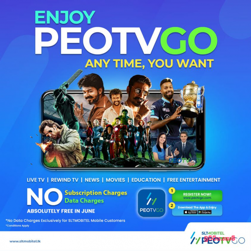 indikakumara මේ මාසය පුරාම පියෝ ටීවී ගෝ නොමිලේ දෙනවලු. www.peotvgo.com එකට ගිහින් රෙජිස්ටර් වෙන්න පුලුවන්. SLT හරි මොබිටෙල් හරි කනෙක්ෂන් එකක් නම් ඩේටා කැපෙන්නෙත් නෑ.